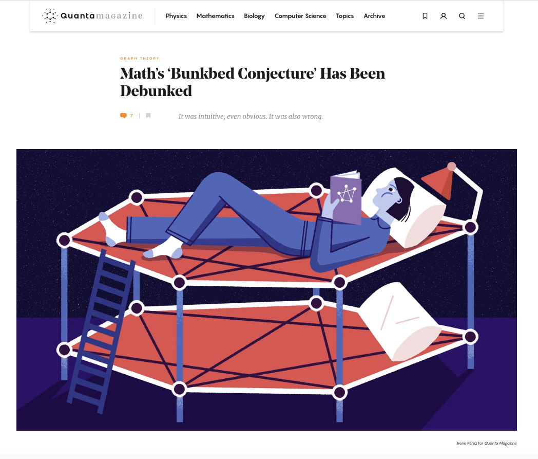 Editorial Illustration for Quanta Magazine about bunked graphs and their mathematical conjeture.